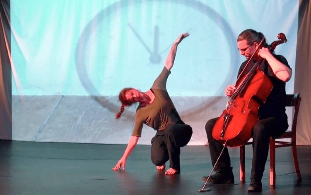 An diesem Abend werden die Grenzen zwischen Horen und Sehen fließender und es gilt, die Musik, die uns überall umgibt zu entdecken, im Rhythmus des Raumes, in der Schwerkraft, in der Klangfarbe von Stimmungen, in der Komposition der Elemente des Abends… Ausgehend von den Wirkfaktoren des Abends – zwei Tänzerinnen, ein Musiker am Cello, der Raum die Zeit und das Publikum – entsteht ein Livedialog zwischen Tanz, Musik und Raum. Ein Tanzkonzert auf der Basis der Improvisation, bei dem das Publikum mit der Atmosphäre, die es mitbringt, und als Bestandteil des Raumes mit zum Werden des Abends beiträgt. Stimmungen und Bilder entstehen und wandeln sich immer wieder neu. Der Betrachter ist eingeladen mit den Performerinnen in den gegenwärtigen Moment einzutauchen, eine andere Betrachtungsweise zu wagen, sowohl auf Raum als auch auf das, was an dem heutigen Abend darin geschieht und Assoziationen freien lauf zu lassen. Die Künstler lassen sich mit ihren Ausdrucksmitteln Tanz und Musik am Cello auf den Moment ein, wandeln Eindrücke, Gefühle, Bilder und Schwingungen in ein sinnliches Tanzkonzert um. Alles entsteht im Hier und Jetzt und ist im nächsten Moment auch schon vergangen. Poetische und fragile Szenen konnen ebenso entstehen wie spannungsgeladene und groovige/treibende Momente. Assoziativ werden Verbindungen angeregt – ganz individuell in der Vorstellung eines jeden Betrachters, verkorpert und vertont durch die Künstler. Vorstellung schafft Vorstellung. Eine feinsinnige und dichte Auseinandersetzung mit dem Moment. Tanz: Claudia Reiff, Cello: Matthias Kaufmann